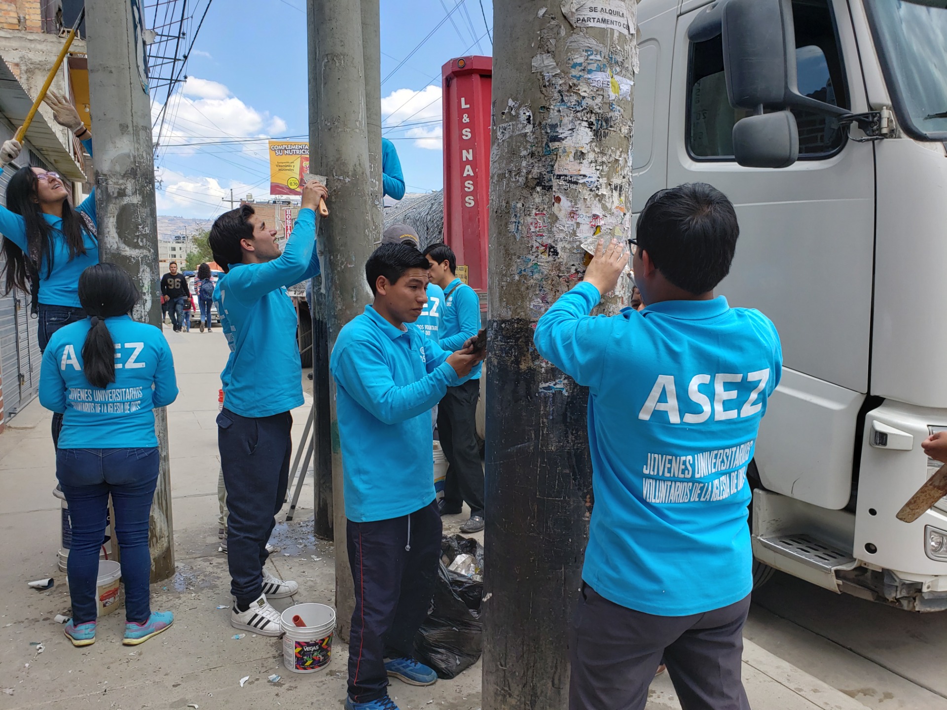 Una de las clases de contaminación es la contaminación visual creado por anuncios publicitarios y papeles pegados a lo largo de toda la ciudad, en postes, viviendas hasta en las veredas. Para crear conciencia, los jóvenes de ASEZ limpiaron los postes de 1 km de la Avenida Vía de Evitamiento Norte, por donde frecuentan muchas personas. Durante la actividad muchas personas se emocionaron de ver a jóvenes realizando estos servicios voluntarios y felicitaron a los voluntarios de ASEZ por su buena obra.