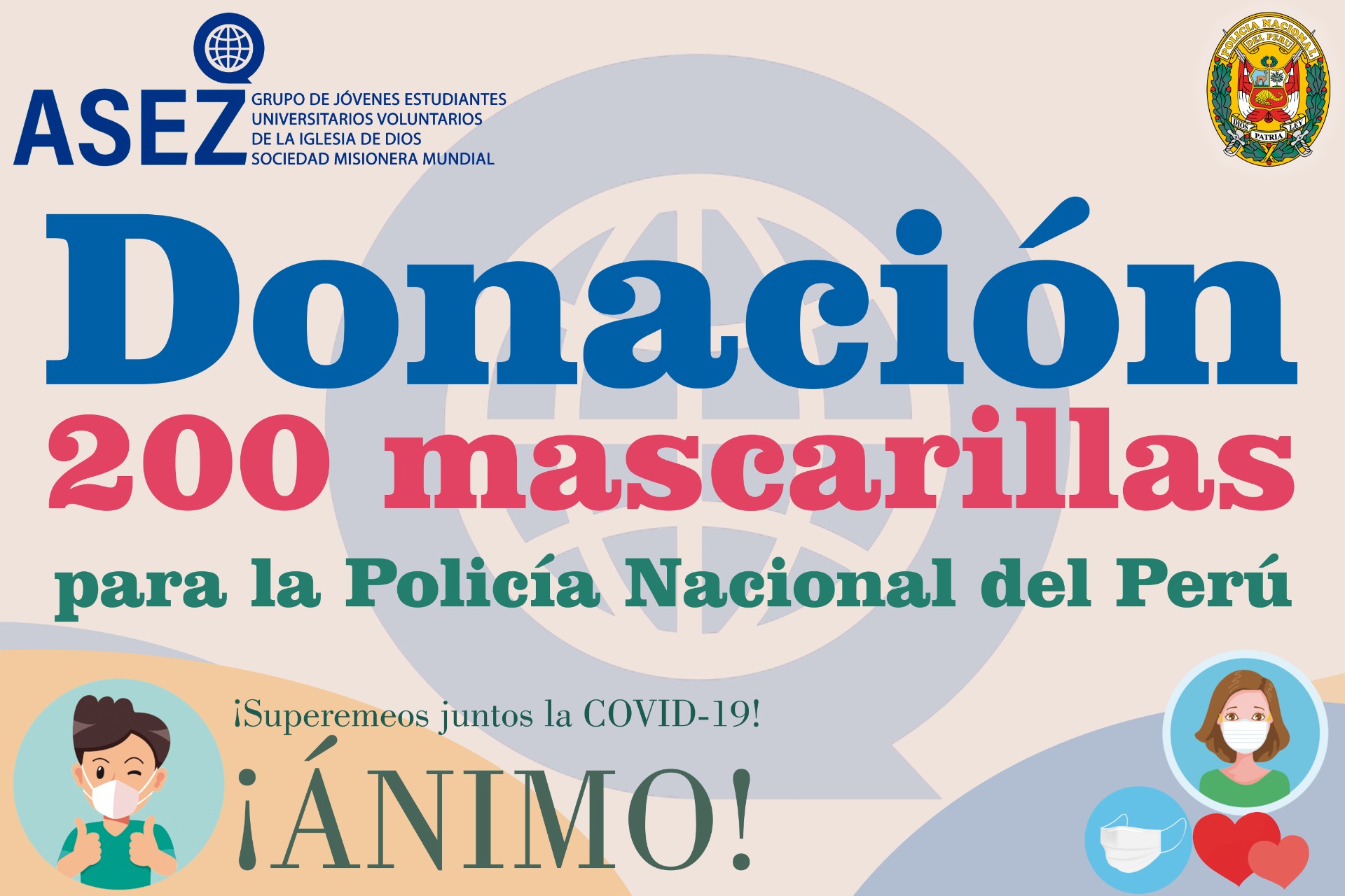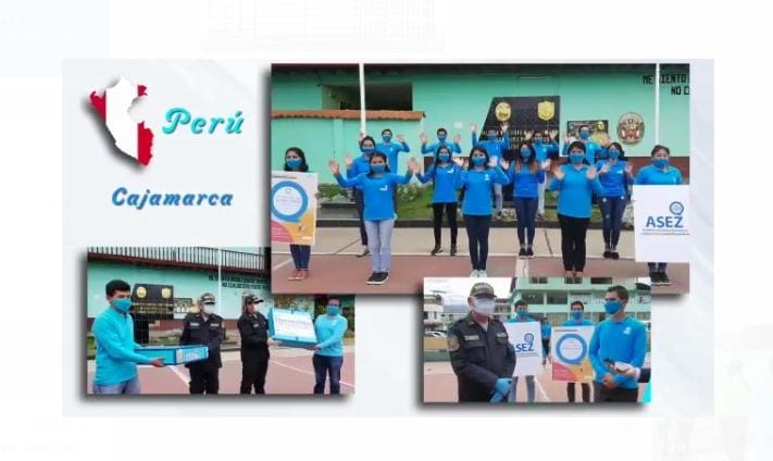 La policía Nacional del Perú fue una de las instituciones más golpeadas por la pandemia, ya que estuvo en primera línea para la lucha contra la propagación de la COVID-19. El cuerpo policial en todo el Perú puso en riesgo su salud e incluso su vida para proteger a la ciudadanía. Por esa razón, los miembros del grupo ASEZ, comprendiendo la gran labor que la Policía realizaba, con el corazón de una Madre confeccionaron 200 mascarillas de tela que fueron donadas y repartidas entre los miembros que conforman esta institución, al ser una de las formas más efectivas para prevenir el contagio por coronavirus. Los jóvenes de ASEZ prepararon también un refrigerio saludable junto con cartas de ánimo escritas y decoradas a mano para entregarlas junto con las mascarillas y así, brindar ánimo y apoyo al cuerpo policial de Cajamarca.