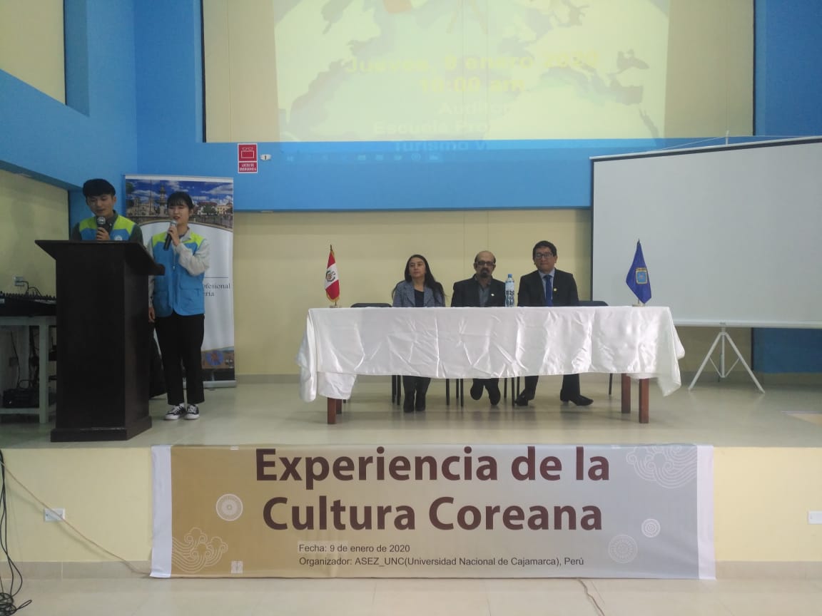 El día 09 de enero del año 2020, los jóvenes universitarios de ASEZ organizaron el Primer Intercambio Cultural Perú - Corea del Sur con el apoyo de la Oficina General de Responsabilidad Social Universitaria de la Universidad Nacional de Cajamarca, "Experiencia de la Cultura Coreana". Este importante evento se realizó en las instalaciones del Auditorio de la Escuela Académico Profesional de Turismo y Hotelería de la UNC, y, los estudiantes universitarios de ASEZ de Corea del Sur junto con el Dr. Gilberto Araujo Barboza, Decano de la Facultad de Ciencias Sociales fueron los encargados de inaugurar el evento.